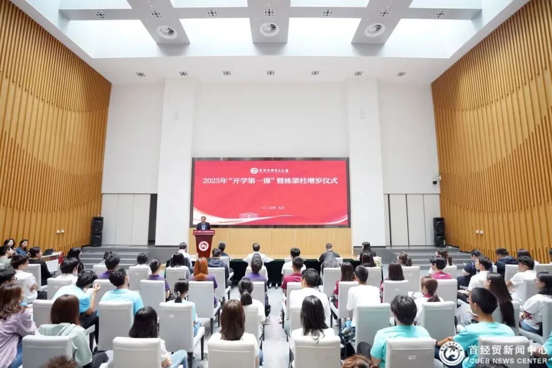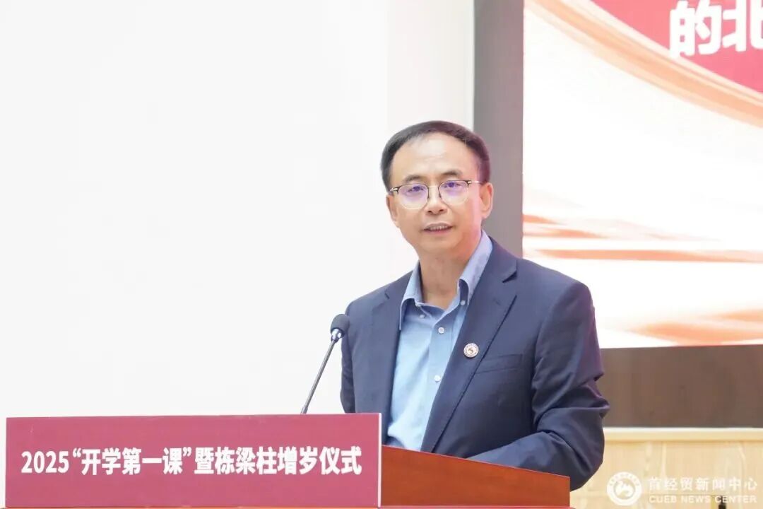 王文举以“从‘经世济民’到‘胸怀天下’,做有担当的首经贸人”为题,为全体2025级新生讲授“开学第一课”。他从中国人民抗日战争暨世界反法西斯战争胜利80周年的重大历史节点出发,通过重温民族抗战史和分享参观中国人民抗日战争纪念馆的深刻体会,强调了铭记历史、传承精神和勇于担当的时代重要性。他指出,八十年前,先烈们以血肉之躯筑起和平长城;八十年后,首经贸人应传承经世济民的初心,自觉肩负民族复兴的使命。广大同学要深刻理解自身所处时代的历史方位,主动扛起“担当”二字,成为胸怀家国、直面挑战、推动人类命运共同体建设的新时代青年。