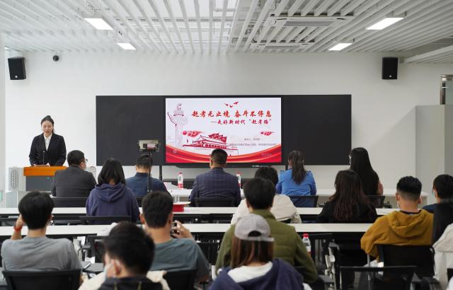 王金宝在比赛开始前为活动致辞。他对通过初赛选拔进入到决赛的同学们表示祝贺,为同学们介绍了活动举办的背景,阐释了活动设计“百年党团史”“中国这十年”“专业看中国”三个赛道蕴含的寄予同学们的三点希望:一是要常态化开展党团史学习,本着久久为功的心态,不断在学史中加深理解、得到启迪,努力做到学史明理、学史增信、学史崇德、学史力行,赓续红色血脉,传承红色基因;二是要深刻领悟十年发展变化,深刻理解中国特色社会主义进入新时代是中国发展新的历史方位,要在读懂十年变化中感悟中国特色社会主义进入新时代的重大意义;三是要结合专业学习读懂中国,把专业学习和国家发展结合起来,把个人成长与祖国命运结合起来,心系“国之大者”,把对祖国血浓于水、与人民同呼吸共命运的情感贯穿学业全过程、融汇在事业追求中。