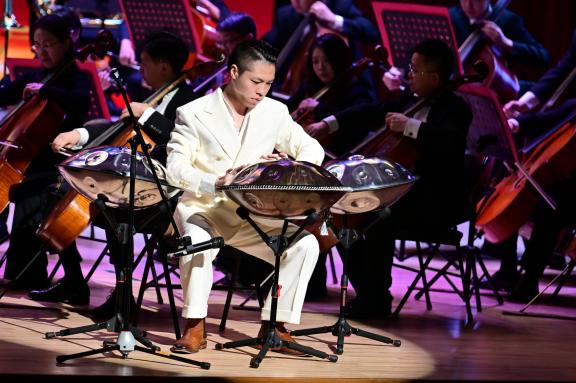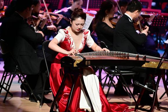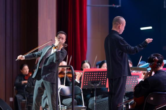 音乐会还特别呈现了由古筝与手碟共同演绎的二重协奏曲《尘雾涅槃》。这两件分别来自不同时代的乐器,在作品中交织共鸣,为同学们带来一场跨越时空的听觉对话。而压轴上演的是同学们耳熟能详的小提琴协奏曲《梁祝》选段。小提琴如泣如诉的旋律与乐团细腻的伴奏相得益彰,将这段传世爱情故事娓娓道来。