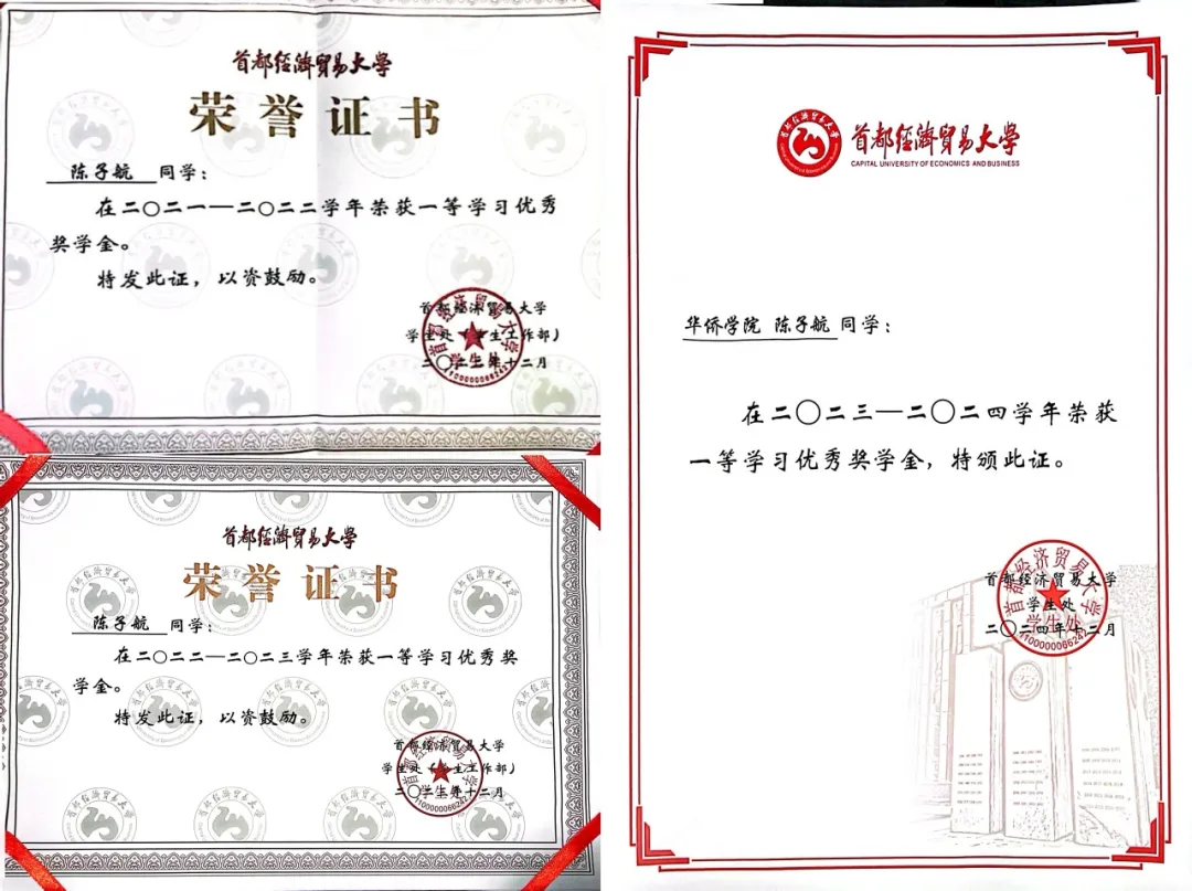 ·2022-2024年 连续三年获得一等学习优秀奖学金